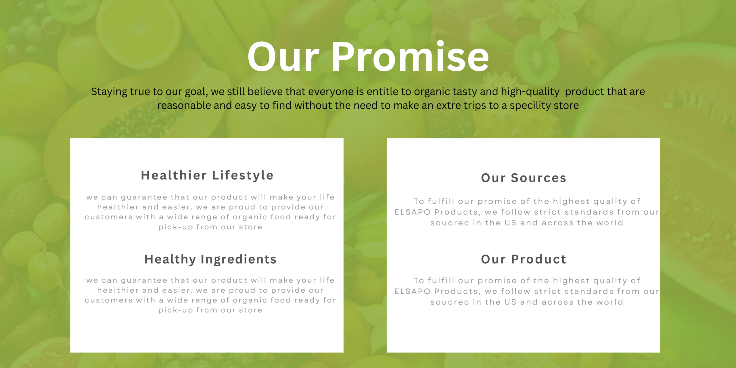 ELSAPO is not just an organic food store .it is all about a healthy lifestyle going organic becomes more and more popular nowadays .we believe that tasty food should be great for your health as well. Our natural or organic food and products are we can gluten free daily free and contain higher level of antioxidants minerals vitamins and healthy fats we are here to help you live a healthier life,