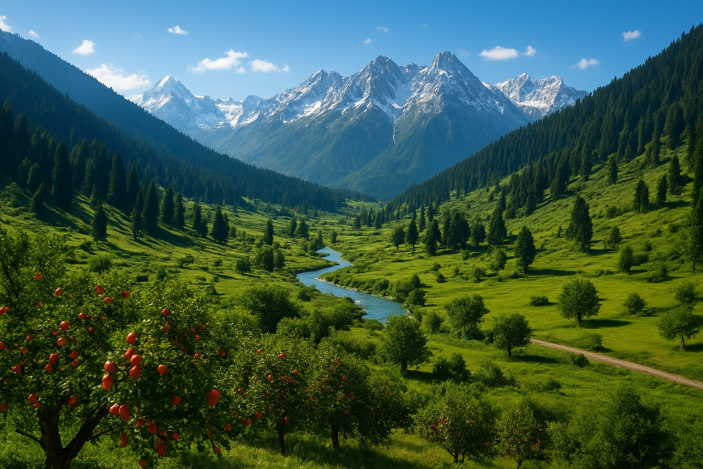 Kashmir lies in the northernmost part of India, surrounded by the mighty Himalayas and the Pir Panjal range. Its geography is dramatic yet gentle—towering peaks guard lush valleys, while rivers like the Jhelum carve paths of life through the land. Every corner of Kashmir feels carefully designed by nature, as if each mountain, meadow, and lake was placed with intention.